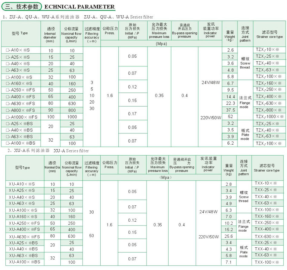 壓力管路過濾器ZU-H40*10P過濾效果好,精度高,但堵塞后清洗比較難,而須更換濾芯。