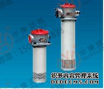 (2)性能與特點 1.安裝連接方便,簡化系統管路:本過濾器直接安裝在油箱蓋板上,過濾器濾頭露在油箱外,回油筒體浸入油箱內,進油口設有管式與法蘭式連接,從而簡化了系統管路。使系統布置較為緊湊,安裝連接更方便。