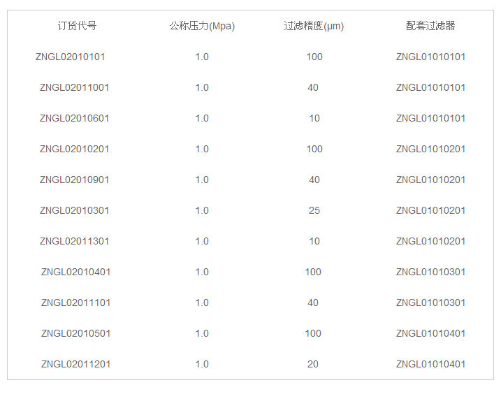 ZNGL02010401雙筒潤滑油濾芯雙筒過濾器是由兩個單筒過濾器和一個兩位六通換向閥組成,閥芯采用錐結構密封,結構簡單,可根據用戶的需要配備濾芯污染壓差發訊器,以達到保護系統安全的目的,過濾器的筒體可有碳鋼和不銹鋼兩種材質選擇,可根據用戶的需要做出相應的選擇,筒體安裝有手動轉換閥,可以實現在線轉換,不用停機操作,當一個同體的濾芯需要更換時,直接扳動轉換閥,另一個過濾筒體即可正常工作,轉換過程中允許少量的液體泄漏,轉換后可以直接將原筒體內濾芯取出,清洗或者更換,使用方便廣泛應用于水泥廠,電力行業,石化以及造紙廠等等行業。廣受好評。