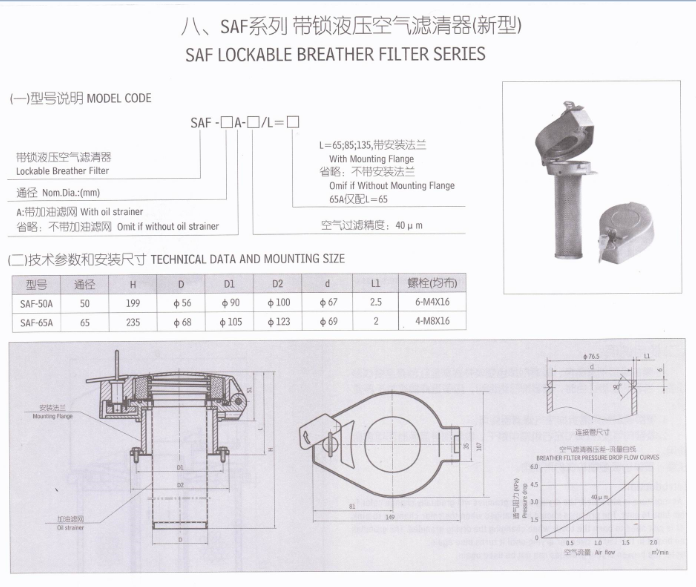 帶鎖液壓空氣濾清器SAF-50A